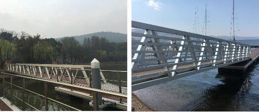 钢筋混凝士结构浮桥的关键点在于浮桥本身的独特结构和特殊的配方使浮桥在海水中免遭腐蚀, 风吹日晒而不老化。浮桥结构采 用完整的单一模具制造,预设水 电管道,以及浮桥之间的各连接口,使水管和电缆能统一安排, 方便管道安装,给码头提供完善的用水系统和供电系统。