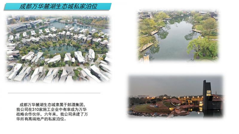 成都万华麓湖生态城被誉为中国房地产界“四大神盘”之一,以高端高品质和高要求为名。我司在其310家施工企业中脱颖而出,成为万华战略合作伙伴。七年来,我司承建了万华所有高端地产的私家泊位。