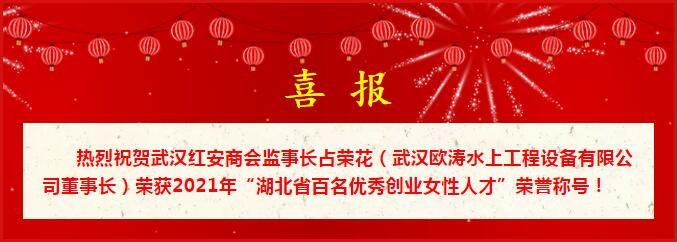 喜讯:热烈祝贺武汉红安商会监事长占荣花荣获2021年“湖北省百名优秀创业女性人才”荣誉称号!