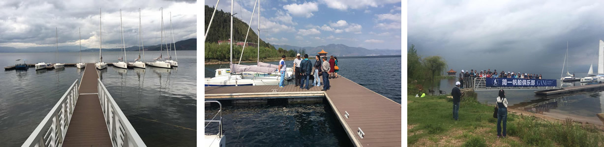 七彩云南,梦幻仙境扶仙湖,我公司承建的唯一一个带浮动式防波堤的高原湖泊执法码头。